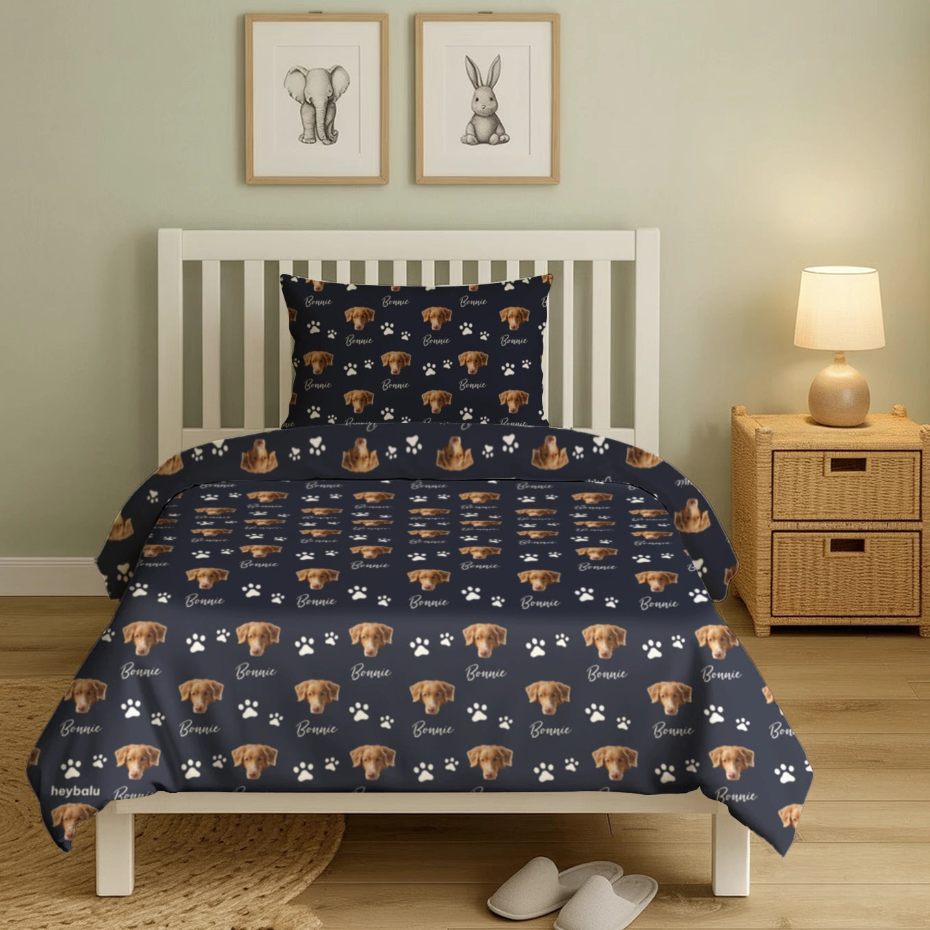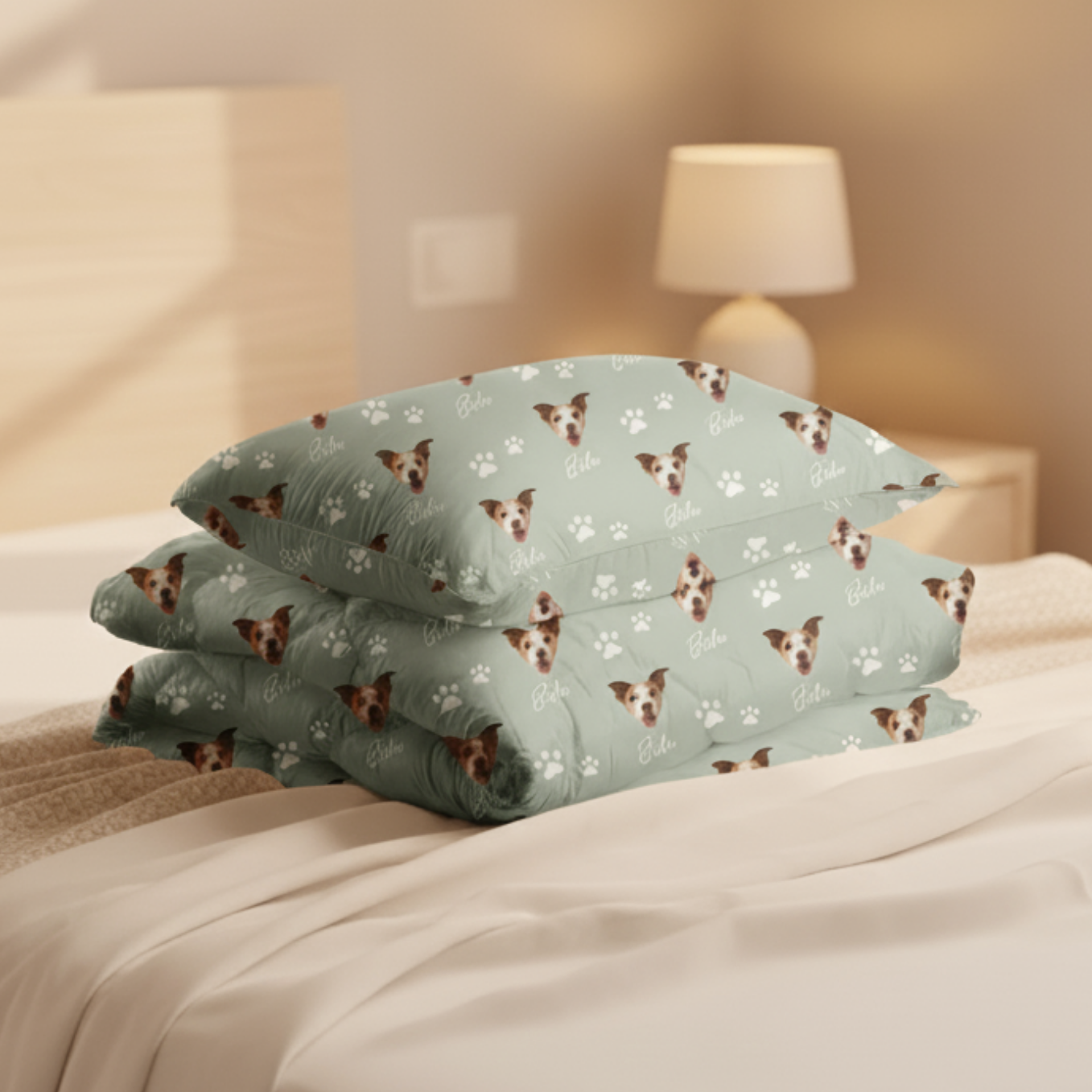 Verwandle deine Bettwäsche in ein liebevolles Andenken mit dem Foto und Namen deines Haustiers. Die Bettwäsche aus 100% Baumwollsatin sorgt nicht nur für höchsten Schlafkomfort, sondern lässt dein Herz bei jedem Blick aufleuchten.