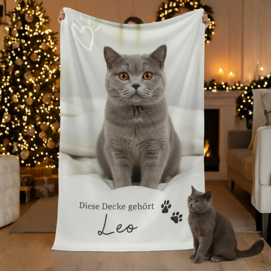 Die perfekte Überraschung für Katzenliebhaber. Personalisiert mit einem Foto des Lieblings, ist diese kuschelige Fleecedecke das ideale Geschenk für die Feiertage.