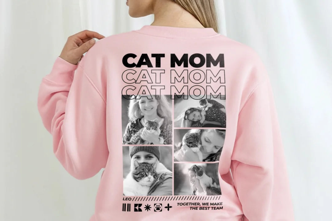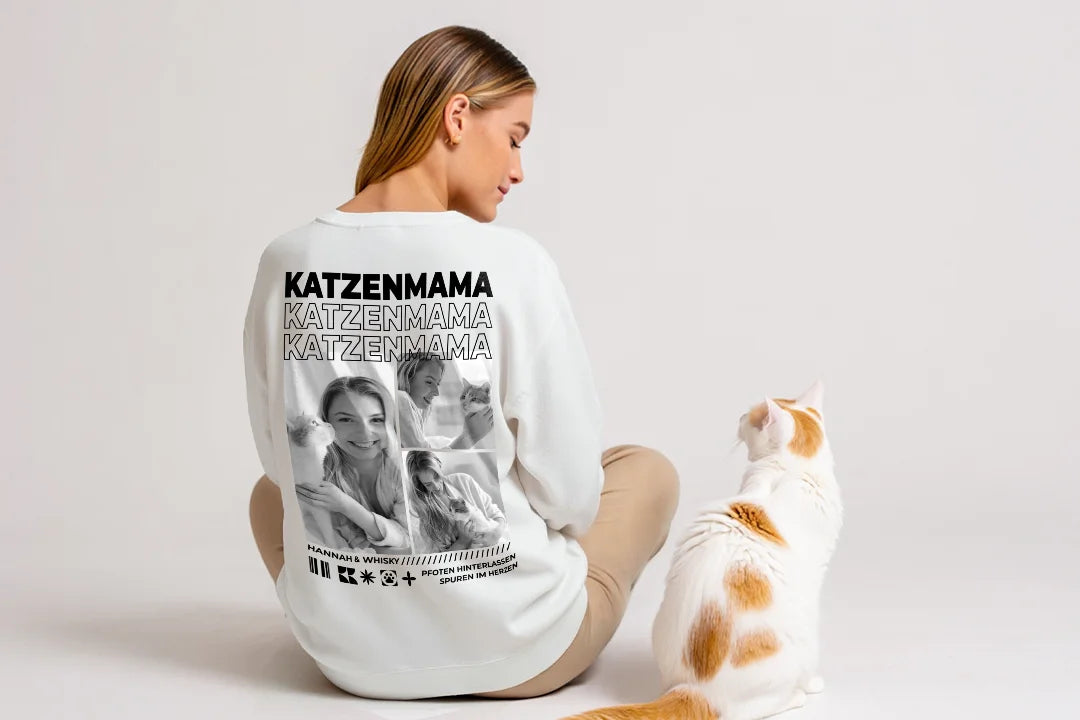 Der personalisierte „Cat Mom“-Hoodie ist mehr als nur ein Kleidungsstück – er ist ein Statement deiner innigen Verbindung zu deiner Fellnase. Gestalte ihn mit bis zu 8 deiner Lieblingsfotos, individuellen Namen und liebevollen Sprüchen. So wird aus einem Hoodie ein echtes Herzensstück, das dich jeden Tag begleitet.
