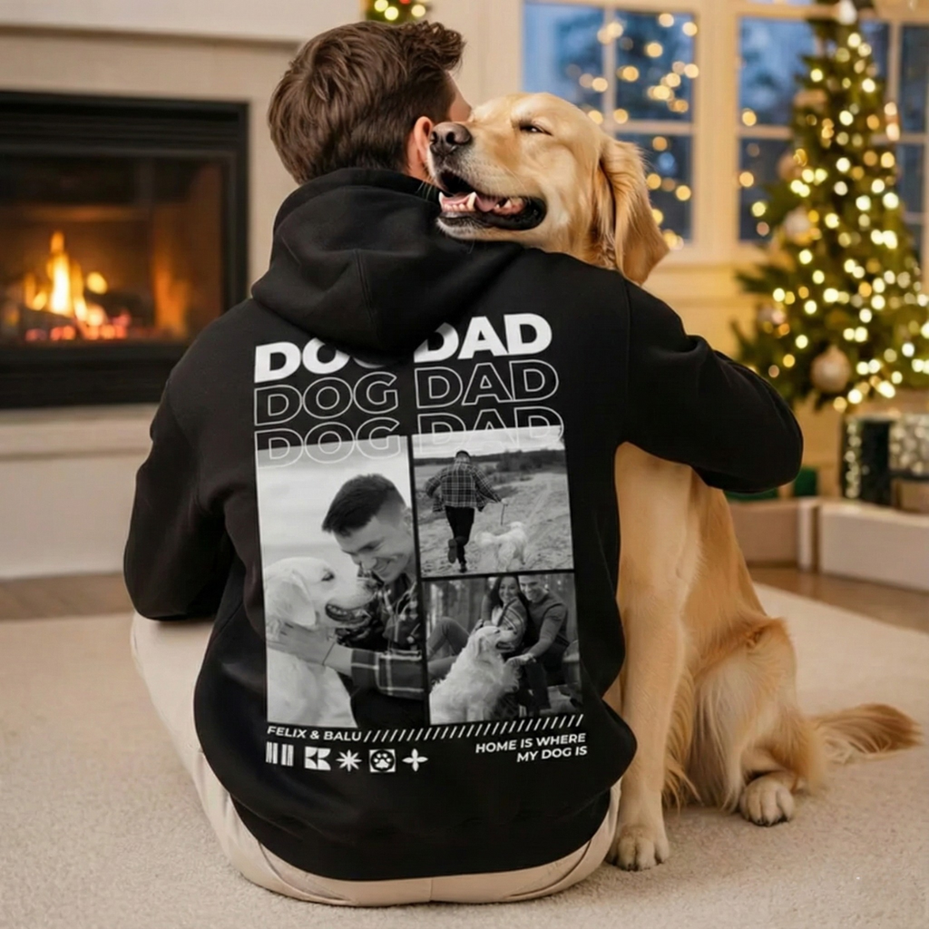 Überrasche den besten Hundepapa mit diesem kuscheligen Hoodie. Personalisiert mit bis zu 8 Fotos ist er das coolste und persönlichste Geschenk zu Weihnachten.