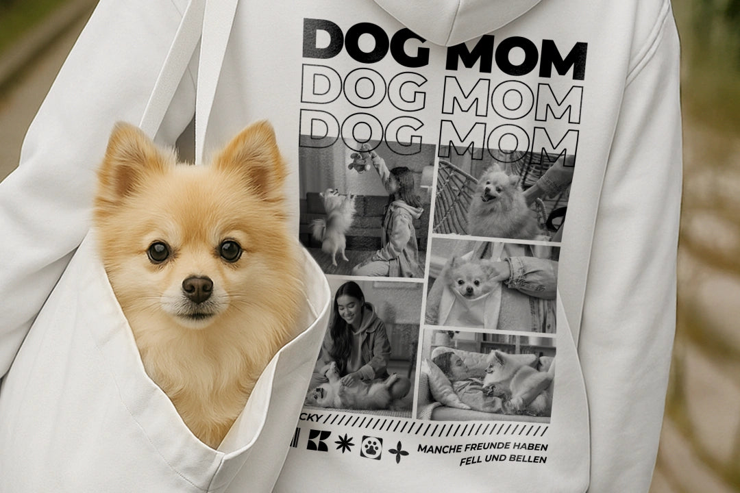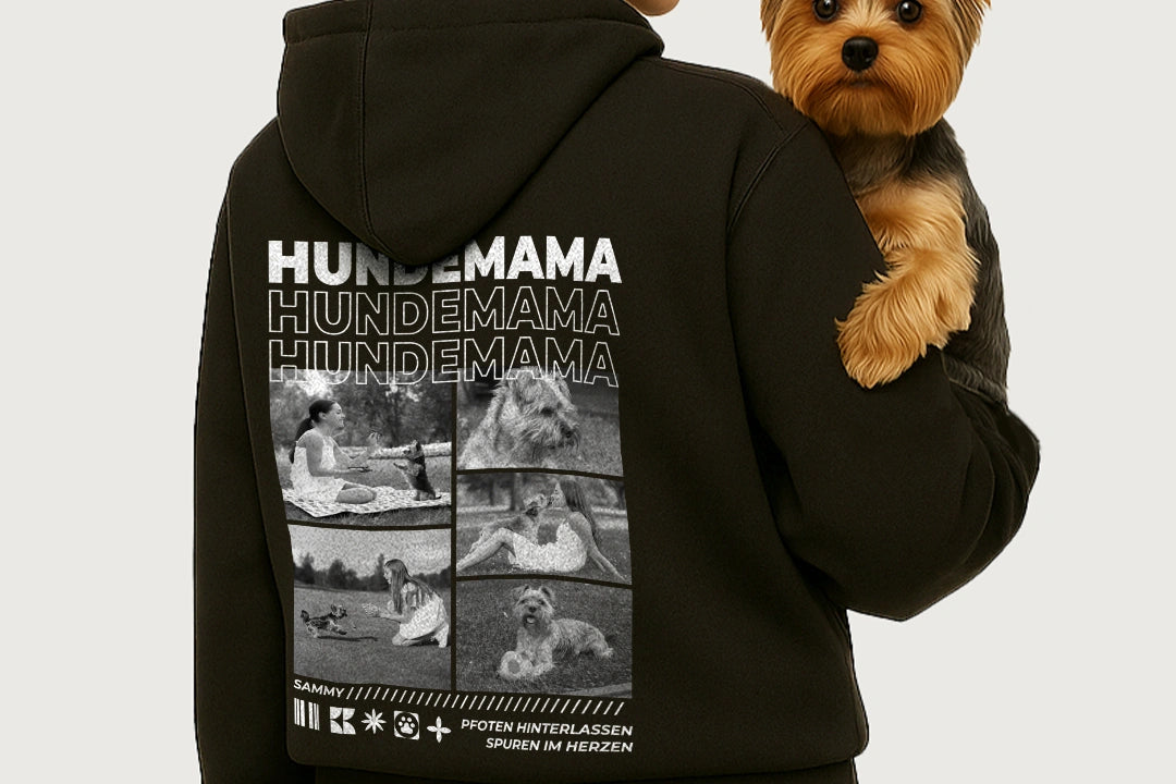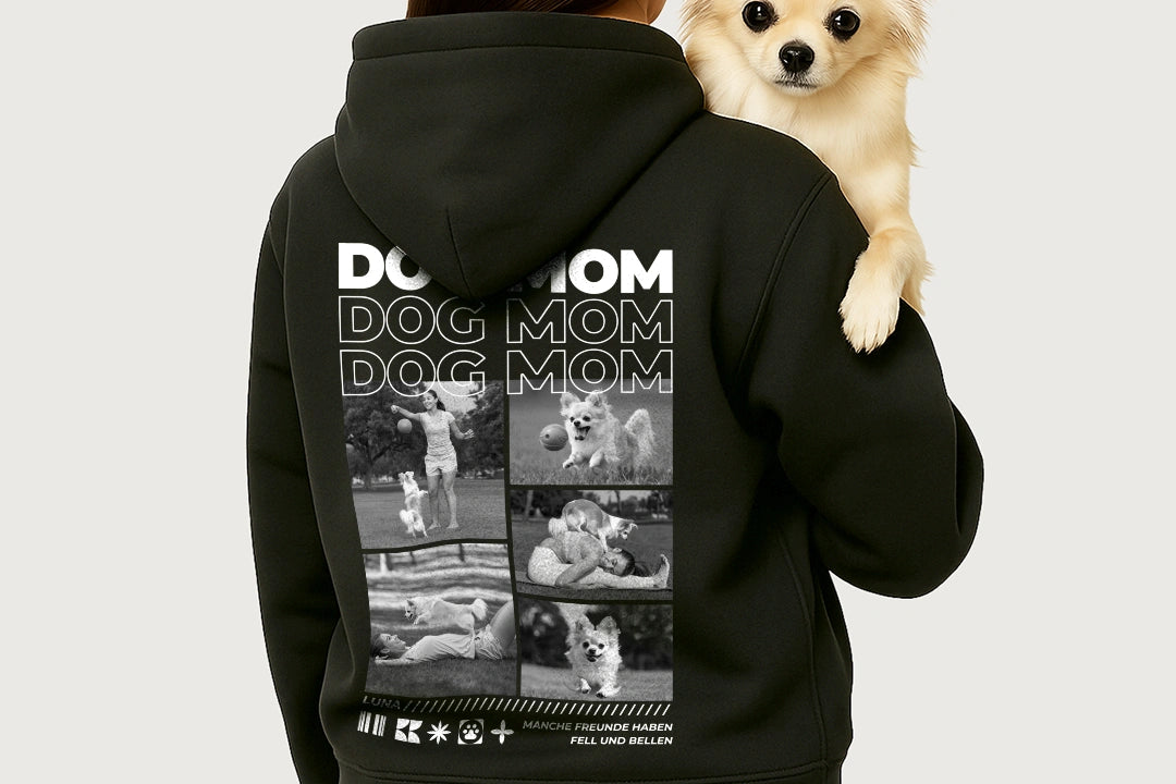 Überrasche die beste Hundemama mit diesem Hoodie. Personalisiert mit einer Collage ihrer Lieblinge, ist er das perfekte, kuschelige Weihnachtsgeschenk.