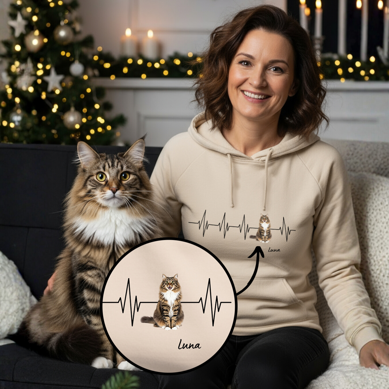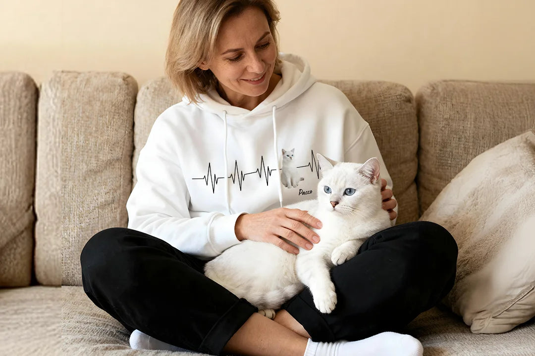 Personalisierter Hoodie ''Herzschlag Katzenfoto''