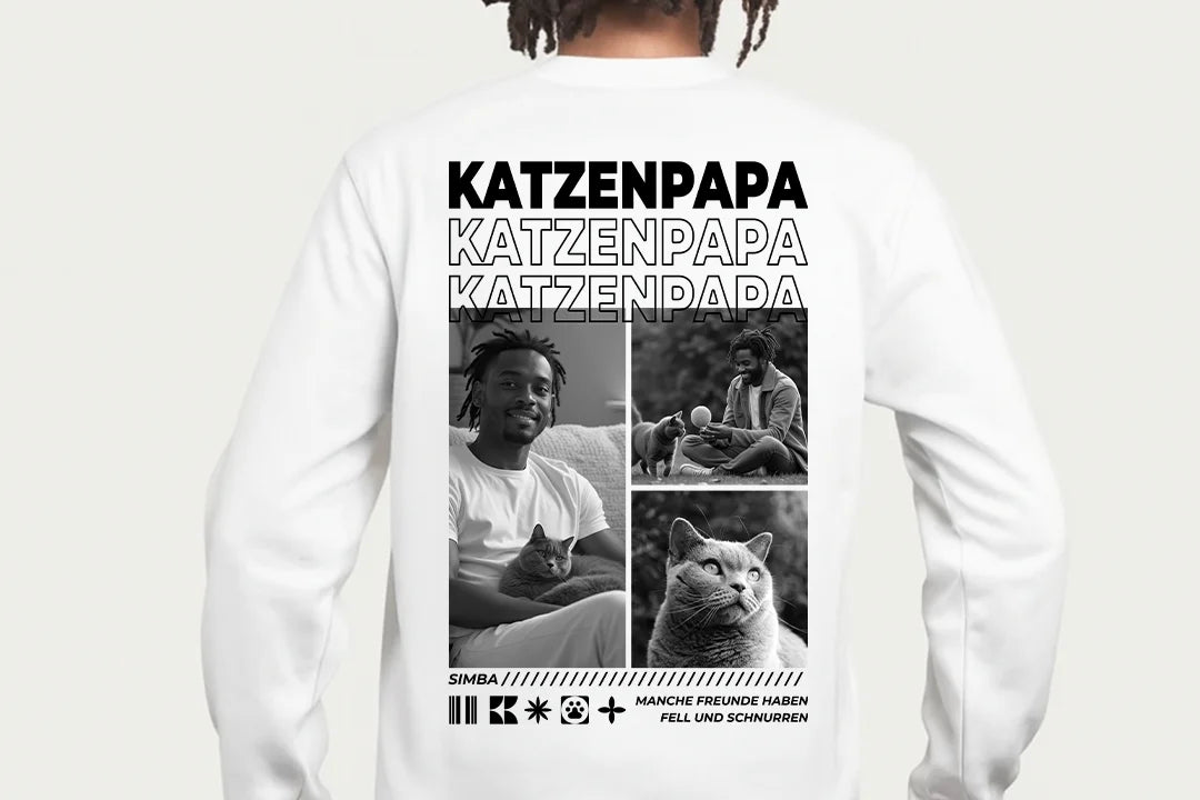 Dieser personalisierte Sweater ist mehr als nur Kleidung – er ist eine Hommage an die besondere Beziehung zwischen dir und deinem Stubentiger. Mit deinem Wunschnamen, Lieblingsfotos und einem individuellen Spruch wird jedes Teil zum Unikat.