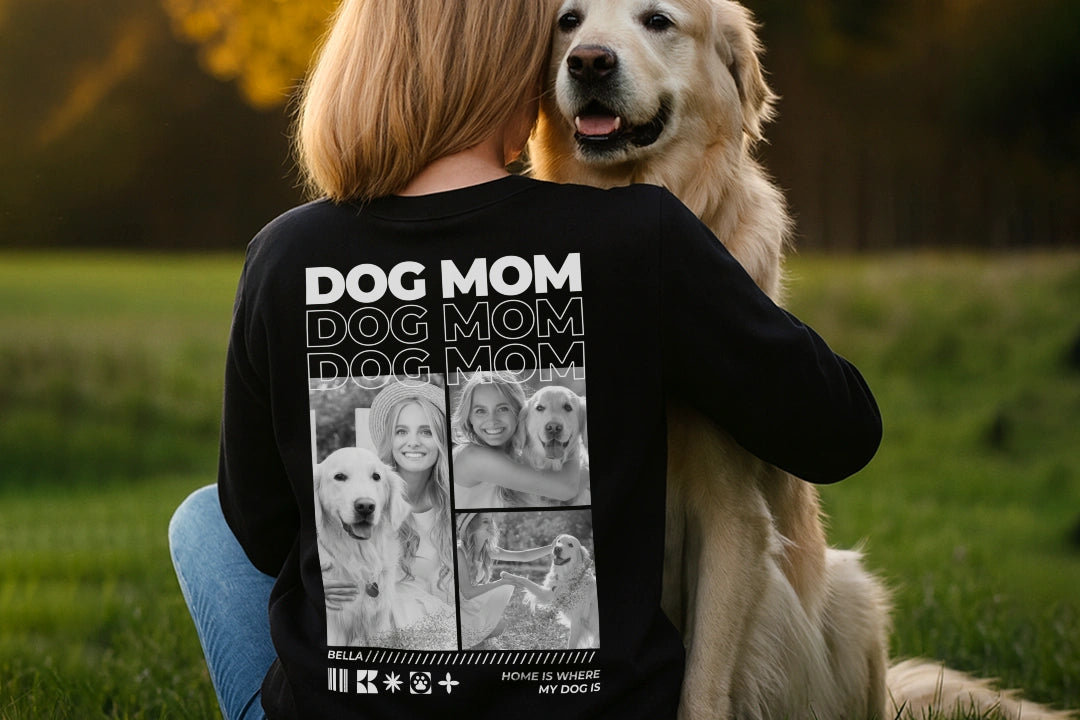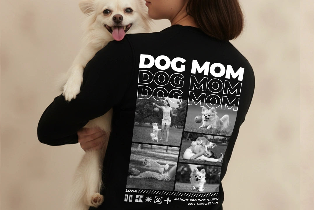 Zeige der Welt, wer dein Herz erobert hat – dein Vierbeiner! Der personalisierte "Dog Mom"-Sweater wird mit deinem Lieblingsspruch, Namen und bis zu acht Fotos von dir und deinem Hund bedruckt. So entsteht ein einzigartiges Kleidungsstück, das eure besondere Verbindung für immer festhält.