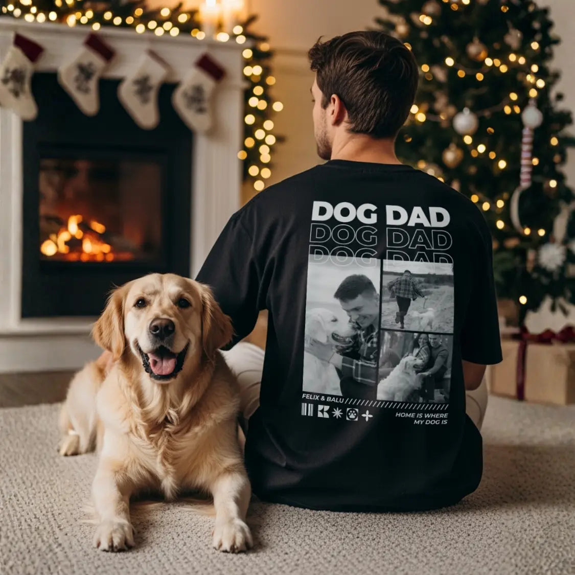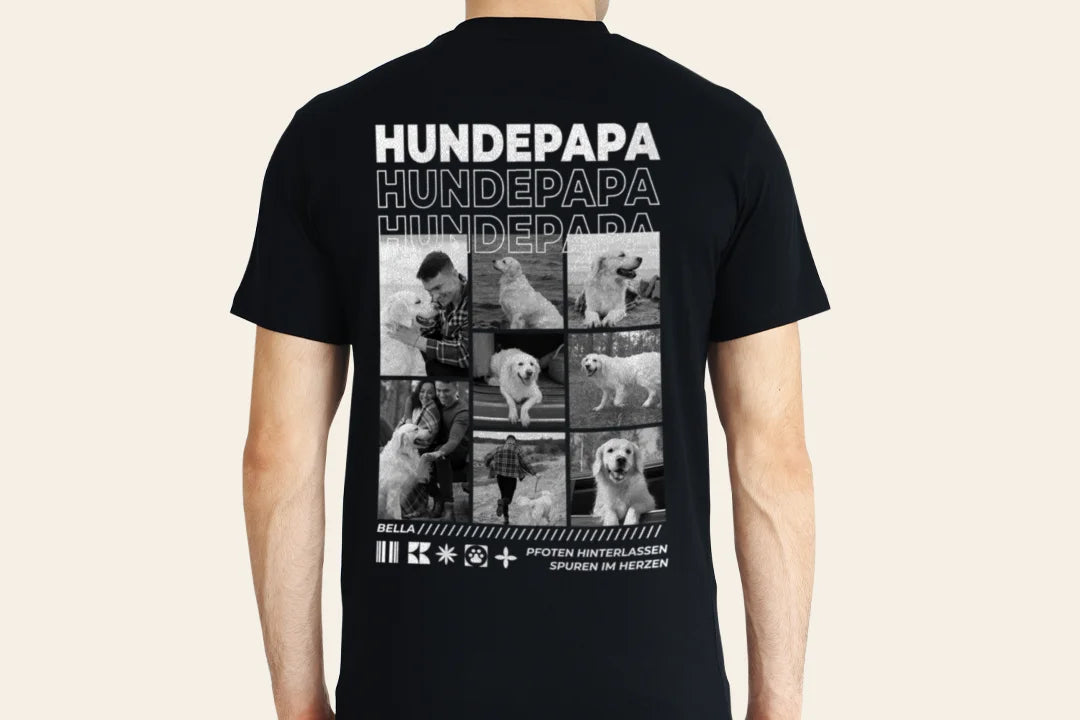 Überrasche einen Hundepapa mit diesem stylischen Shirt. Personalisiert mit Fotos seiner Fellnasen ist es das perfekte, coole Weihnachtsgeschenk.