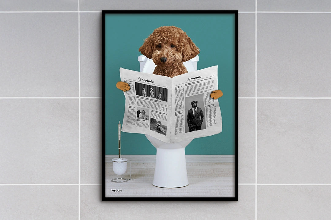 Mit dem personalisierten Poster „Wichtige Sitzung“ wird dein Badezimmer zum Highlight! Dein Vierbeiner in einer humorvollen Szene sorgt garantiert für Schmunzeln und verleiht deiner Bad-Deko eine charmante, persönliche Note.