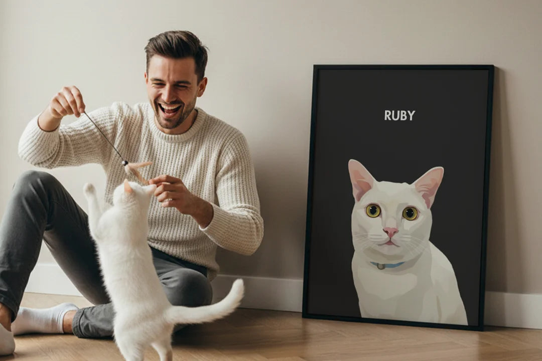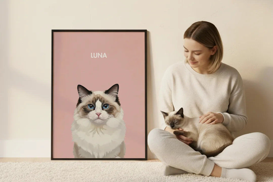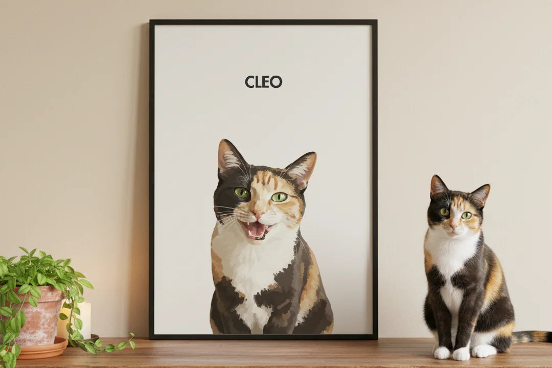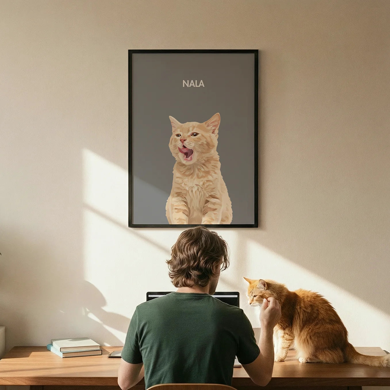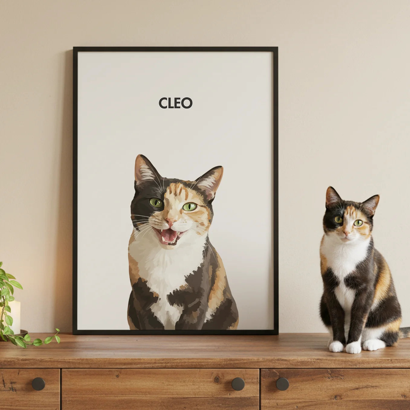 Dieses personalisierte Katzenposter verwandelt das Foto Deiner Katze in ein stilvolles Kunstwerk. Der hochwertige Druck bringt Charakter und Persönlichkeit perfekt zur Geltung und macht Dein Haustier zum Blickfang.
