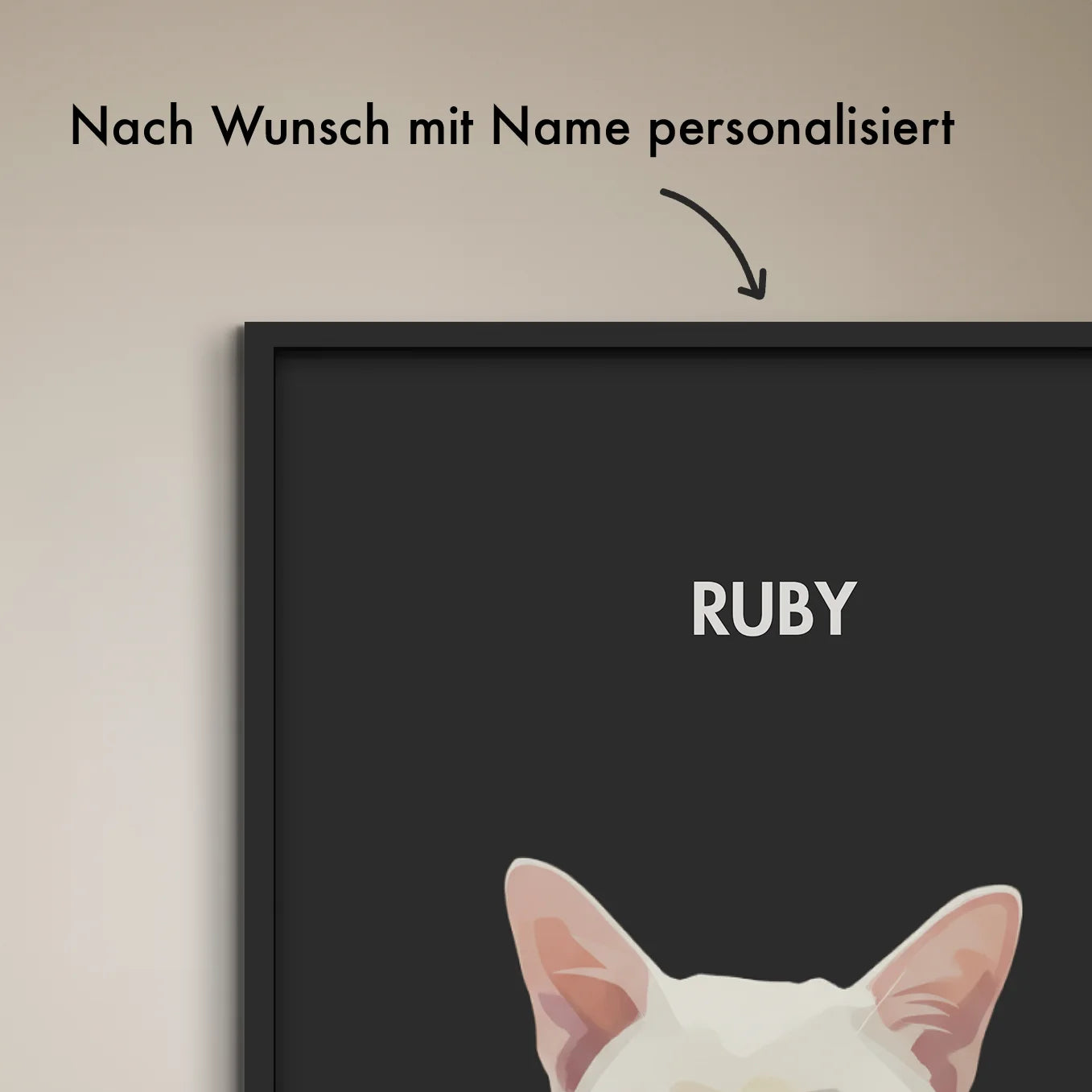 Wähle Deine Lieblings-Hintergrundfarbe und ergänze optional den Namen Deiner Katze. So entsteht ein personalisiertes Poster, das genau zu Deinem Zuhause und Deiner Fellnase passt.