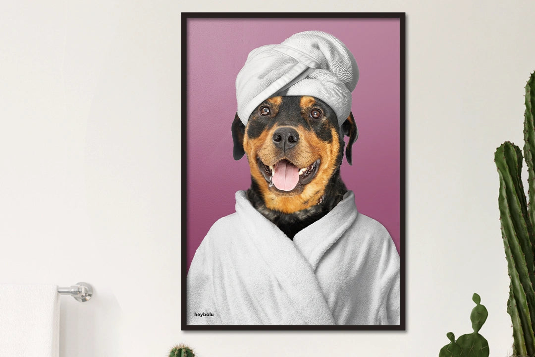 Dieses Poster ist die ideale Dekoration für dein Badezimmer oder deinen persönlichen Wellnessbereich. Gedruckt auf hochwertigem Papier mit lebendigen Farben, fängt es den entspannten und lustigen Moment deines Haustiers perfekt ein. Es ist eine tolle Möglichkeit, deine Liebe zu deinem Tier zu zeigen.