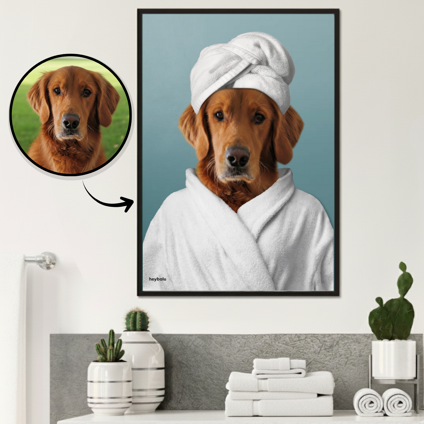 Verwandle ein Foto deines Lieblings in ein humorvolles Kunstwerk. Lade einfach das beste Bild hoch und unsere Designer kümmern sich um den Rest, um deinen Vierbeiner perfekt in Szene zu setzen. So schaffst du eine einzigartige Erinnerung, die dich jeden Tag zum Lächeln bringt.