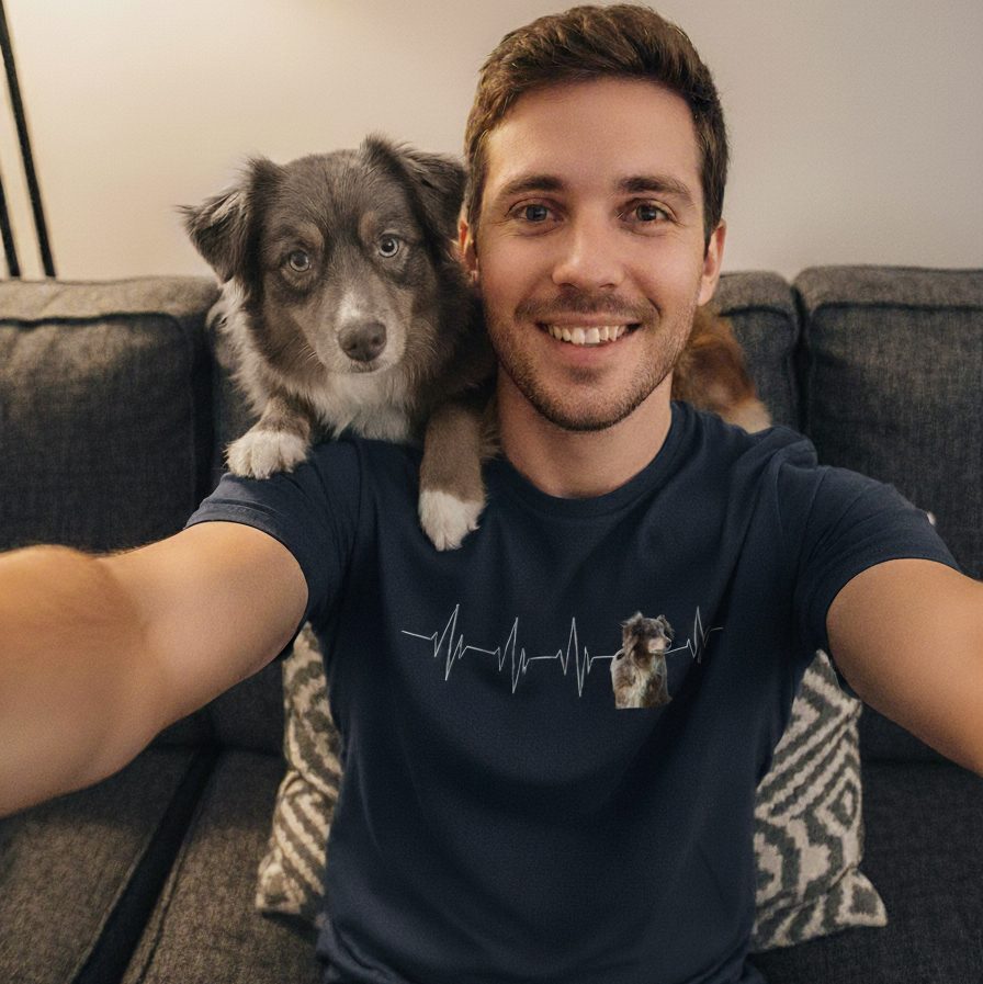 Entwerfe ein T-Shirt, das mehr sagt als tausend Worte. Dein Herzschlag verbindet sich mit dem Bild deines Lieblingstiers und dessen Namen – ein Symbol der unzertrennlichen Bindung zwischen euch.