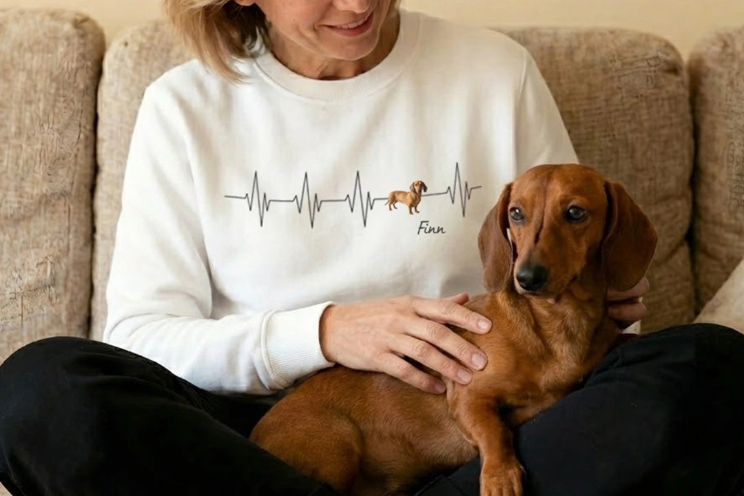 Überrasche deine Liebsten mit einem einzigartigen Geschenk. Der "Haustier Herzschlag" Sweater ist ideal für alle Tierfreunde und kann bis zu 3 Tiere zeigen.