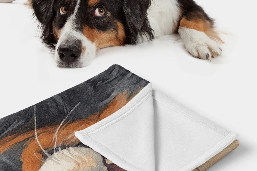 Unsere personalisierte Decke „Portrait“ ist mehr als nur eine Decke – sie ist ein echtes Erinnerungsstück. Lass deinen treuen Gefährten als hochwertiges Porträt verewigen und schaffe einen Ort der Geborgenheit und Liebe, ob auf dem Sofa oder unterwegs.